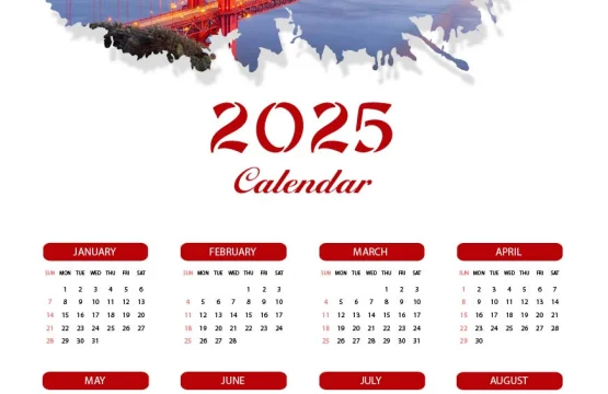 The Golden Gate bridge of San Francisco, illuminated by a beautiful sunset is on full display in this 2025 Vinyl Sticker Calendar. A popular tourist spot, with a unique culture, architecture and geography, full of world famous landmarks and home to many achievements and inventions. San Fran, the Golden City as people call it, has conquered the hearts and imaginations across the globe. To some it is home, to others a pleasant memory or a future destination trip, the city of fog, dreams and wonders.