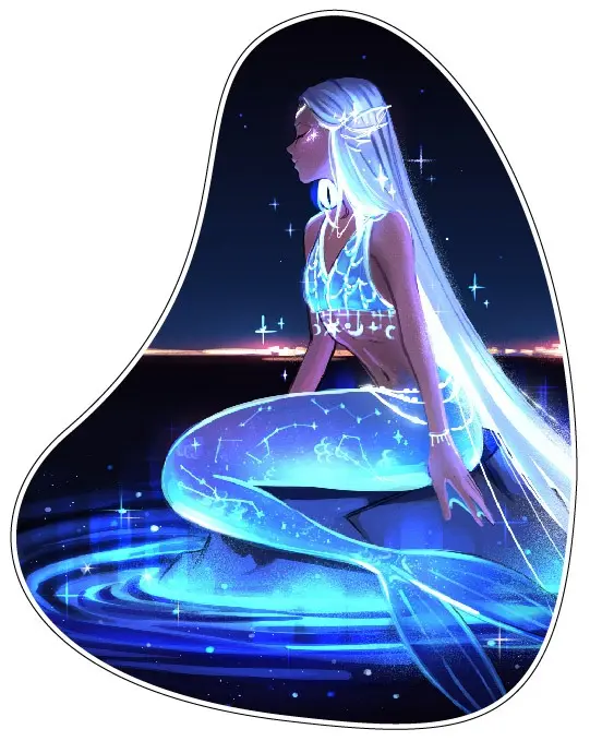 - Home > All Vinyl Stickers > Printed Vinyl Stickers > Anime Mermaid Celestial Neon Ocean Goddess Fantasy Ethereal Night Sky Magical Water Spirit Dreamy Cosmic Vibes Blue Holographic Mystical Sea vinyl sticker / printed decal / label / autocollant wall poster