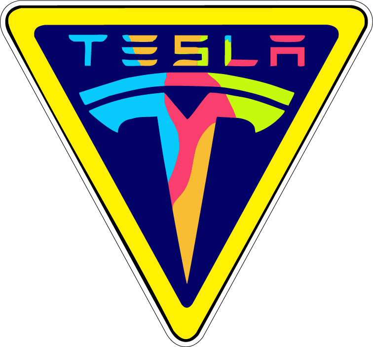 - Home > All Vinyl Stickers > Printed Vinyl Stickers > Fancy Tesla Logo In Yield Traffic Sign Art vinyl sticker / printed decal / label / autocollant / wall poster