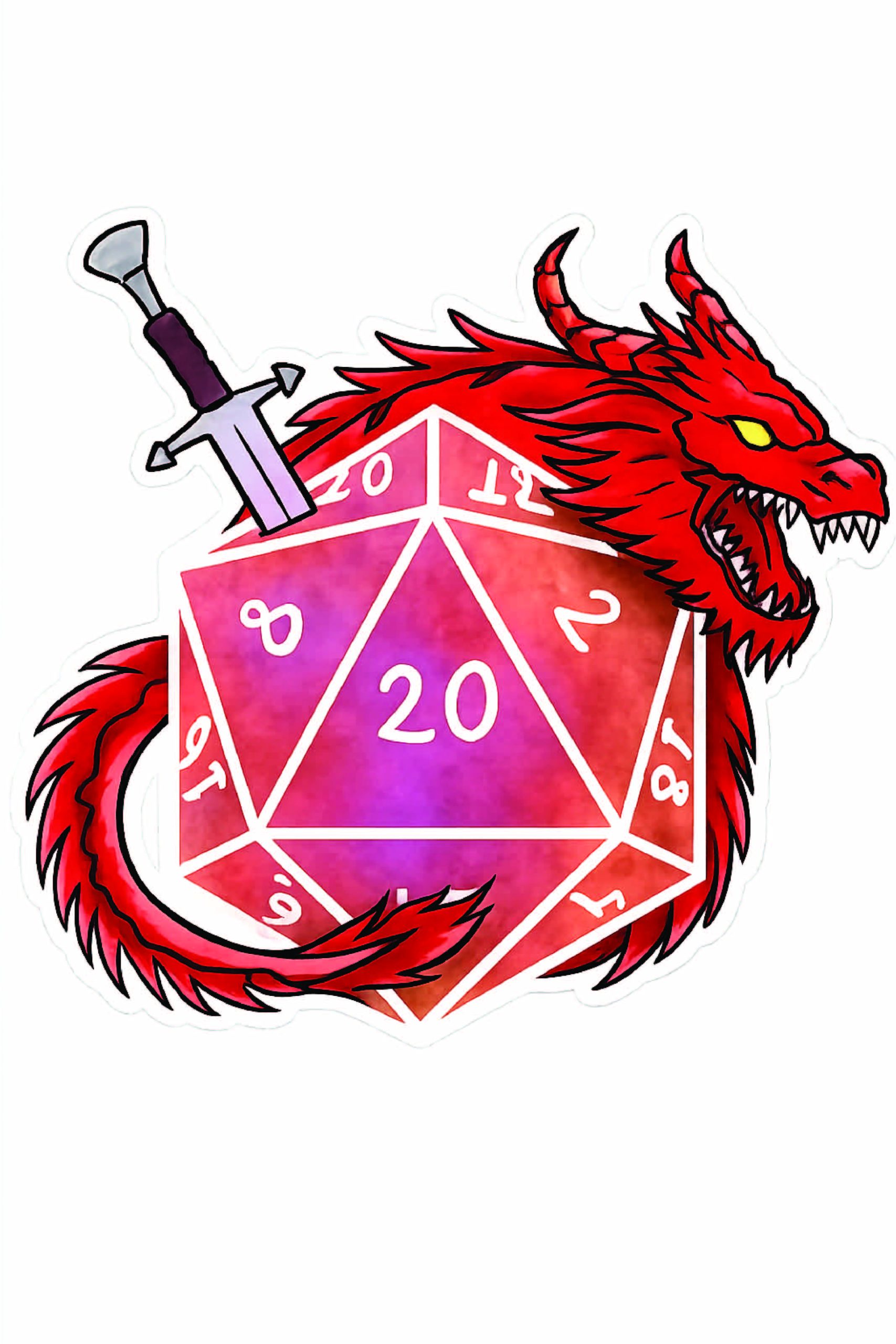 Fierce Red Dragon D20 Dice Fantasy RPG Fire Dragon Warrior Dungeons & Dragons Tabletop Gaming Art vinyl sticker / printed decal / label / autocollant / wall poster