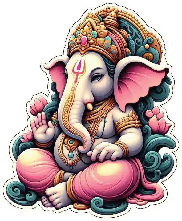 Did you know that the direction of Ganesha’s trunk has symbolic meaning? A trunk curved to the left is associated with material prosperity, while a rightward curve signifies spiritual growth. This sticker design embodies both, ensuring harmony between worldly success and inner peace.