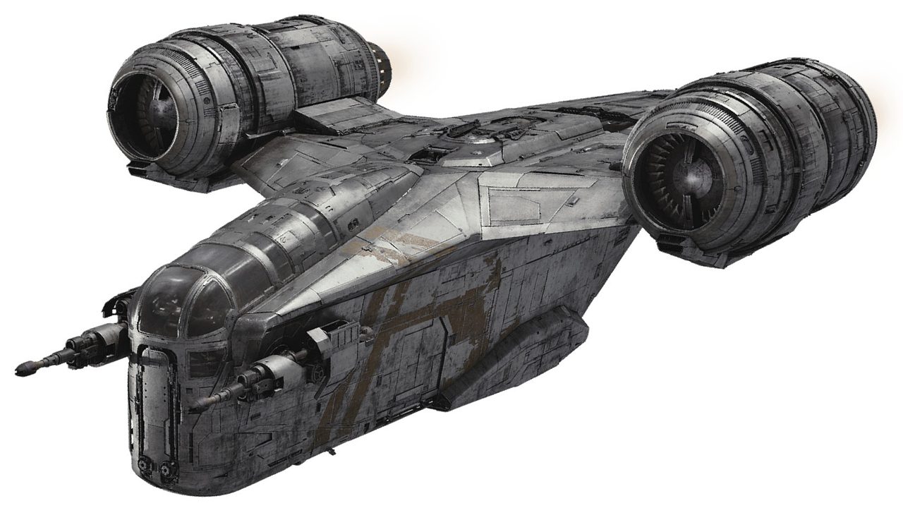 A former military craft used to patrol local territories in the time before the Empire, the Razor Crest serves as the trusty transport and living quarters for the Mandalorian and the Child, as they travel from world to world, staying out of reach of the Imperial Remnant.