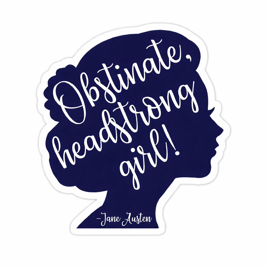 Celebrate bold intellect and unapologetic spirit with this Obstinate Headstrong Girl Jane Austen Quote Feminist Literary Book Lover Aesthetic Vinyl Sticker — a tribute to strong minds and fearless hearts.