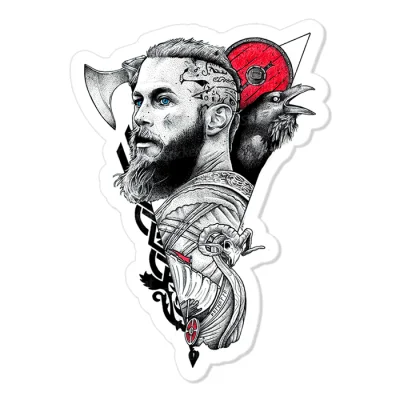 Forged in the spirit of the North and kissed by the cold winds of legend, this Ragnar Viking Warrior Norse Mythology Raven Axe Nordic Tattoo Art Scandinavian Valhalla Berserker Gaming Vinyl Sticker is more than artwork — it is devotion carved in ink and fire.
