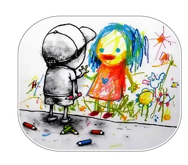 In a quiet corner of the city, where the chaos of reality meets the boundless possibilities of imagination, there was a wall—not just any wall, but one kissed by the dreams of a young artist. On its surface, he painted his muse: a girl unlike any other. She was colorful, vibrant, and alive with hues that seemed borrowed from the first rays of dawn. This was no ordinary mural; it was a declaration of love, a tribute to the one who had transformed his mundane reality into a masterpiece of longing and joy. And now, this enchanting story is immortalized in the “Romantic Love Story of a Boy and Painted Girl” vinyl sticker.