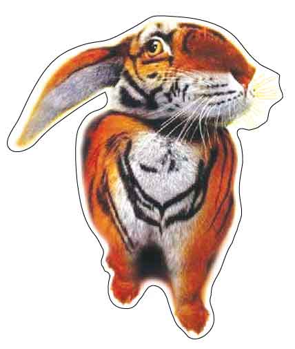 Tiger Rabbit Hybrid Creature Wild Animal Design vinyl sticker/ printed decal / label / autocollant / wall poster