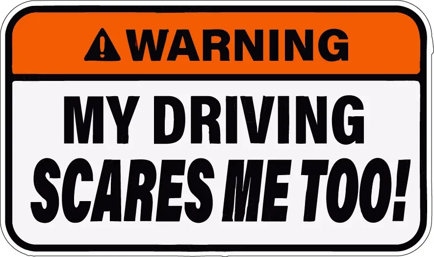 - Home > All Vinyl Stickers > Printed Vinyl Stickers > Warning My Driving Scares Me Too Funny Car Caution Sign Sarcastic Humor Meme Road Trip Comedy Driver Joke vinyl sticker / printed decal / label / autocollant wall poster