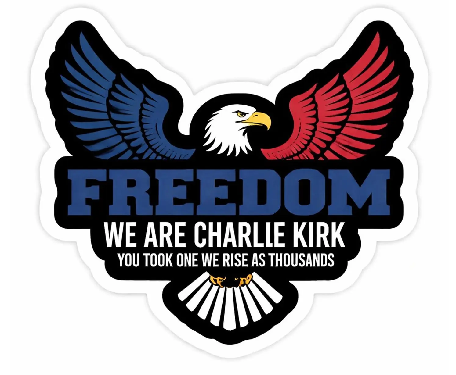 We Are Charlie Kirk Freedom Eagle USA Conservative American Flag Wings vinyl sticker / printed decal / label / autocollant / wall poster