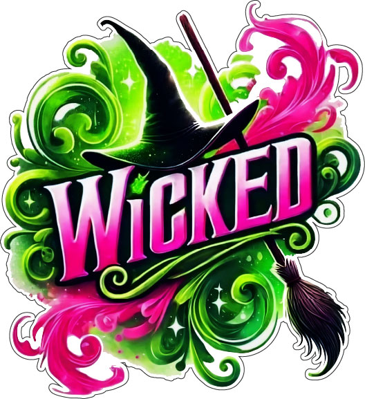 Wicked For Good Movie Logo Glinda & Elphaba Yin-Yang Pink Green Colors vinyl sticker / printed decal / label / autocollant / wall poster